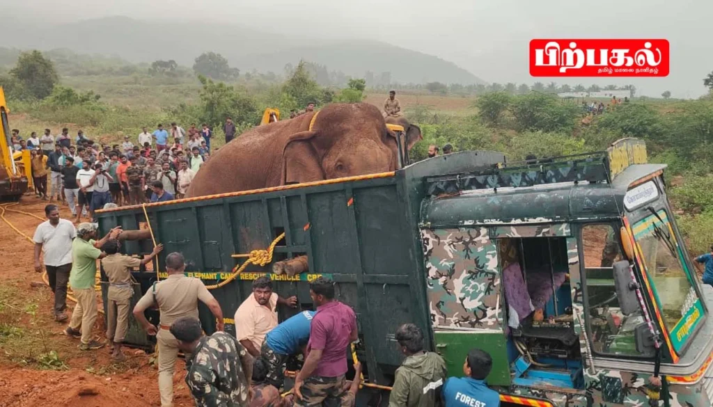 யானை பிடிபட்டது. சில நாட்களுக்கு முன் மயக்க ஊசி போட முயன்ற கால்நடை மருத்துவரை தாக்கியது இந்த யானை தான்.